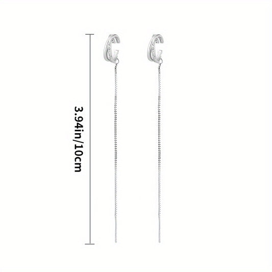 Shiny Zircon Decor Sexy Ear Cuff Threader Earrings Copper Jewelry Exquisite Female Gift Daily Casual