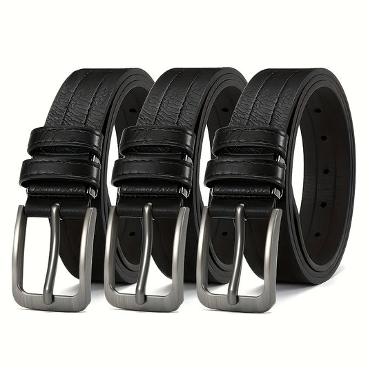 Set of 3 Men's Casual Vintage Belts, Durable Breathable Belts Designed for Business Professionals, Mature Individuals, and Fashion Enthusiasts, Ideal Gift for Any Occasion, Men's Luxury Belts, Adjustable, Square Buckle, Suita