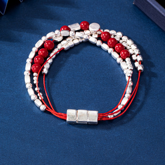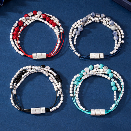 Silver Beaded Lapis Lazuli Magnetic Bracelet Jewelry Gift Birthday Gifts For Women Mom Wife