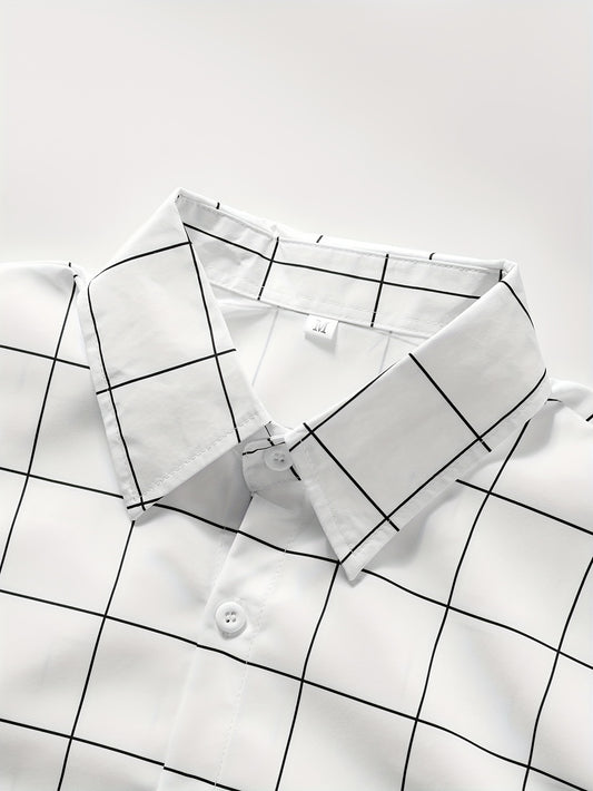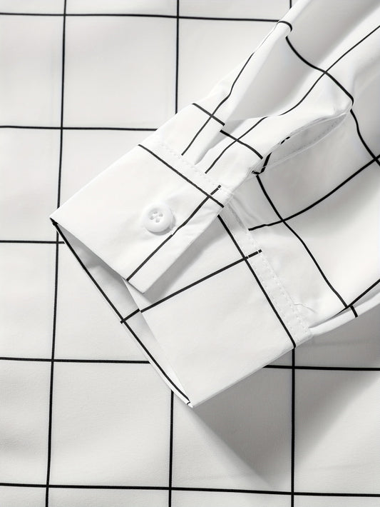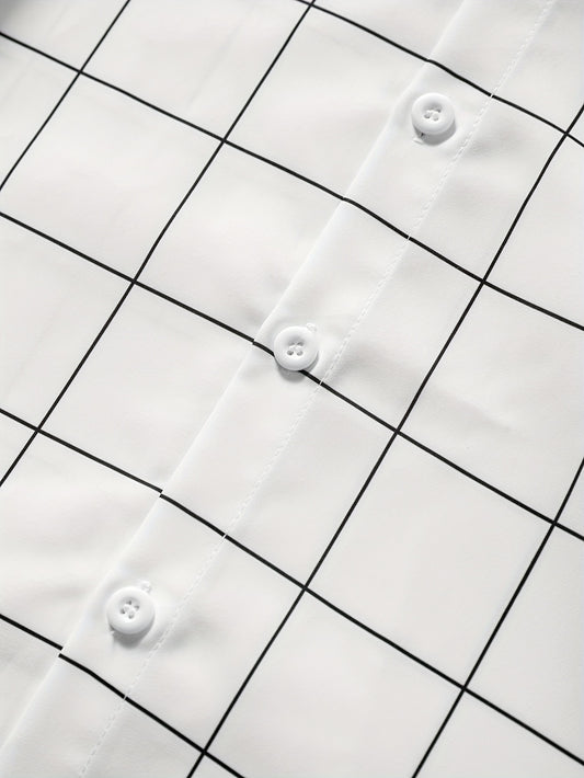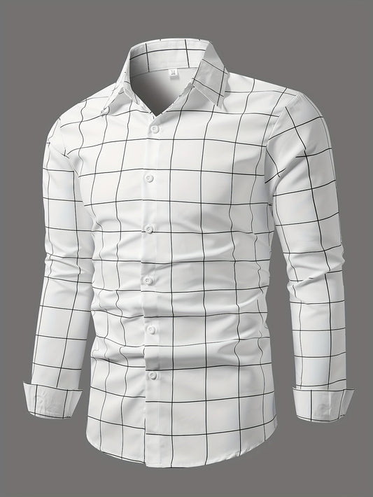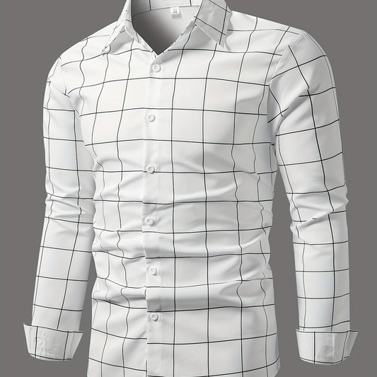 Simple Stripe And Plaid Pattern, Men's Casual Daily Thin Long Sleeve Lapel Shirt For Spring Summer
