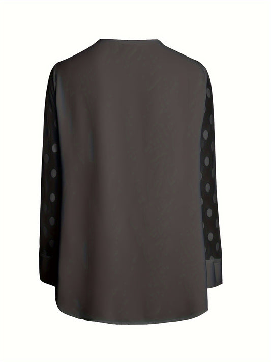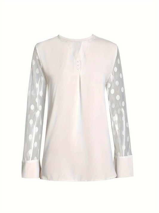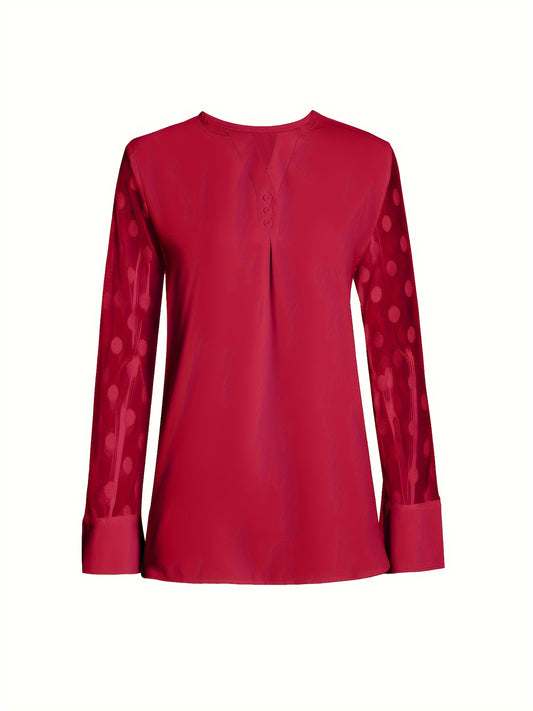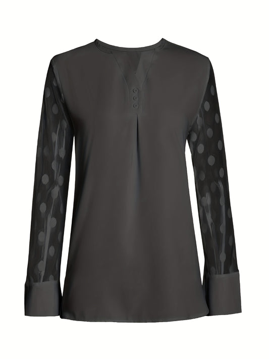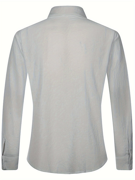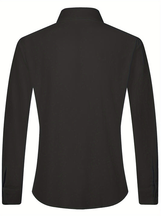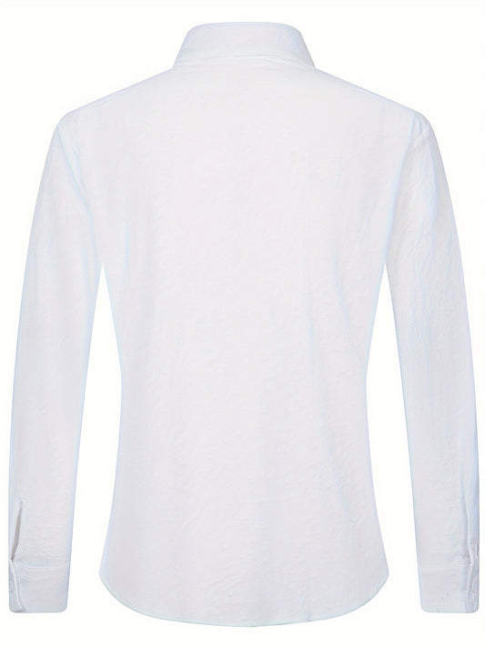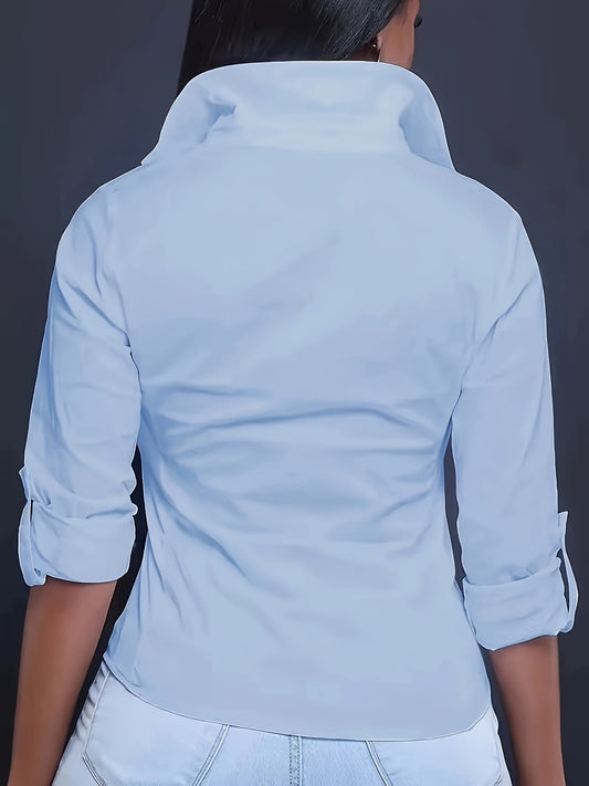 Solid Button Front Blouse, Elegant Long Sleeve Notched Neck Top, Women's Clothing