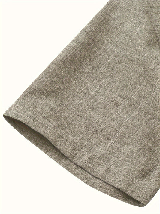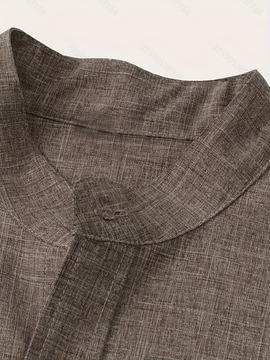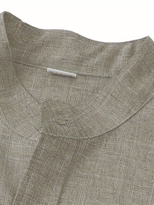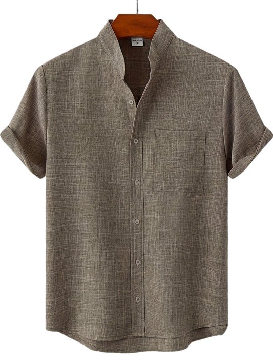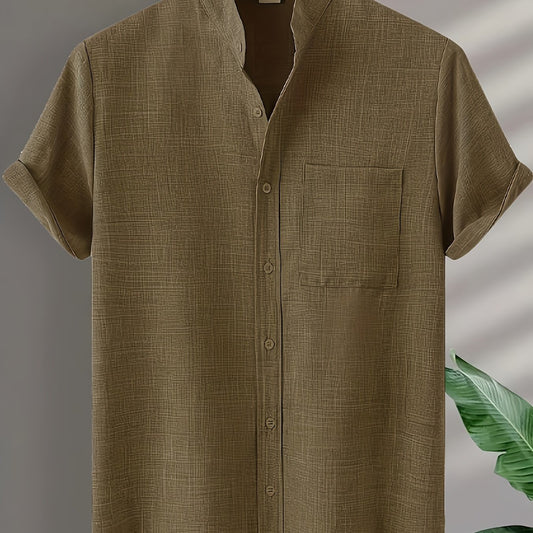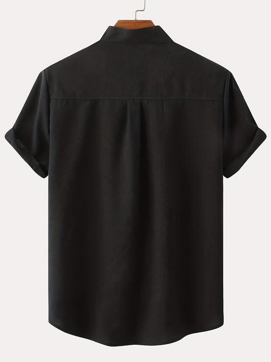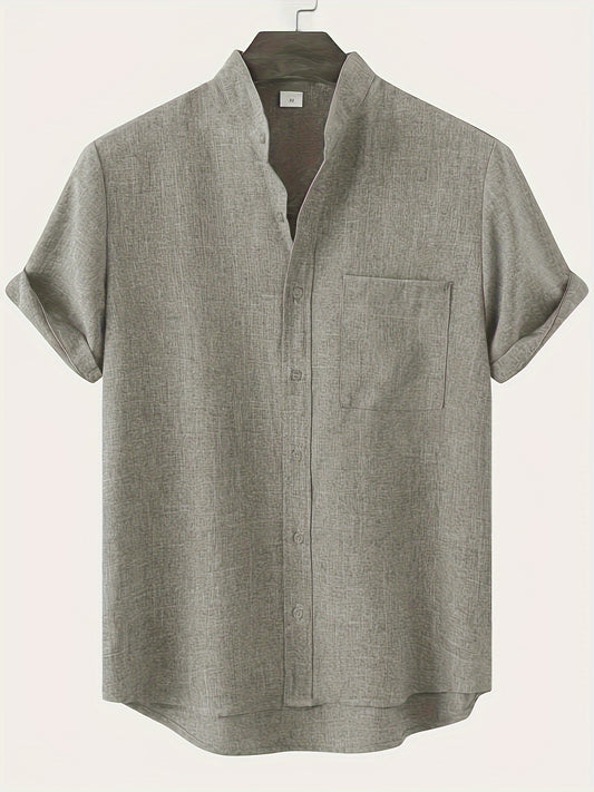 Solid Color Men's Short Sleeve Stand Collar Shirt, Men's Casual Button Up Shirt For Summer Outdoor