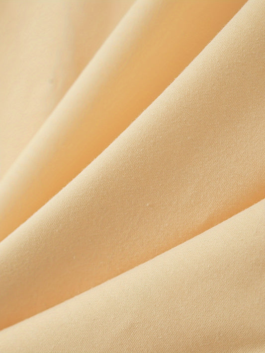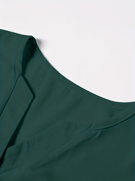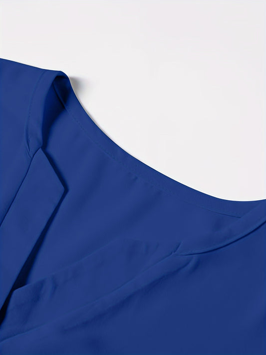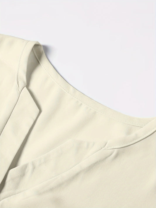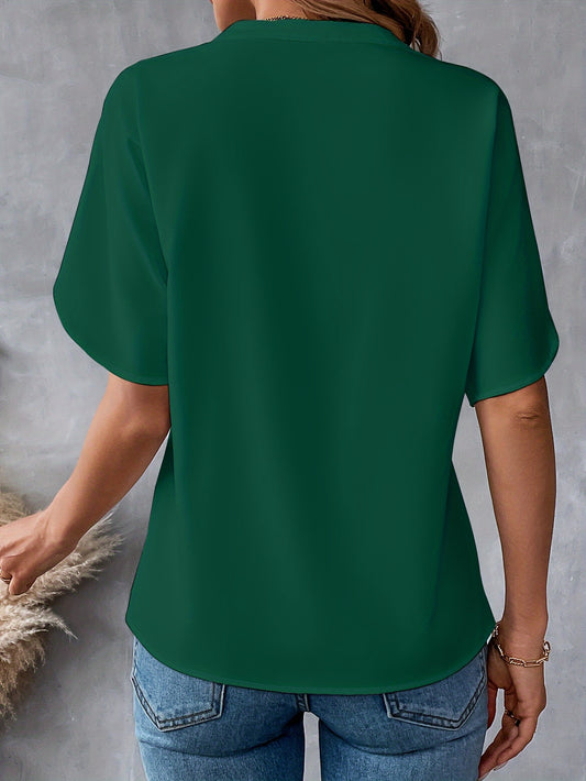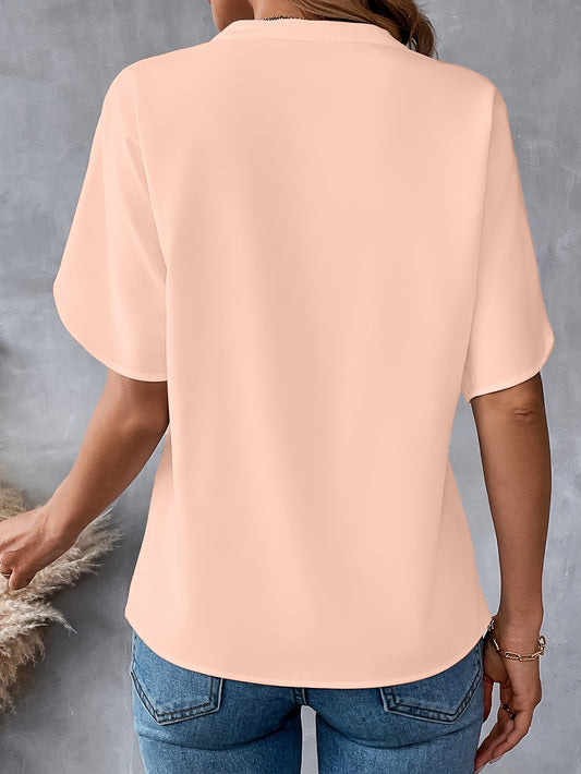 Solid Color Notch Neck Blouse, Casual Short Split Sleeve Blouse For Spring & Summer, Women's Clothing