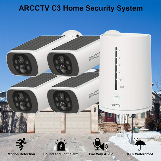 Solar Security Cameras Wireless Outdoor, 4 Cam-Kit, 4MP Solar Security Camera Wireless System, Color Night Vision, Motion Detection, No Monthly Fee, 64GB Memory Card, Outdoor Surveillance, Property Protection, Wireless Setup,