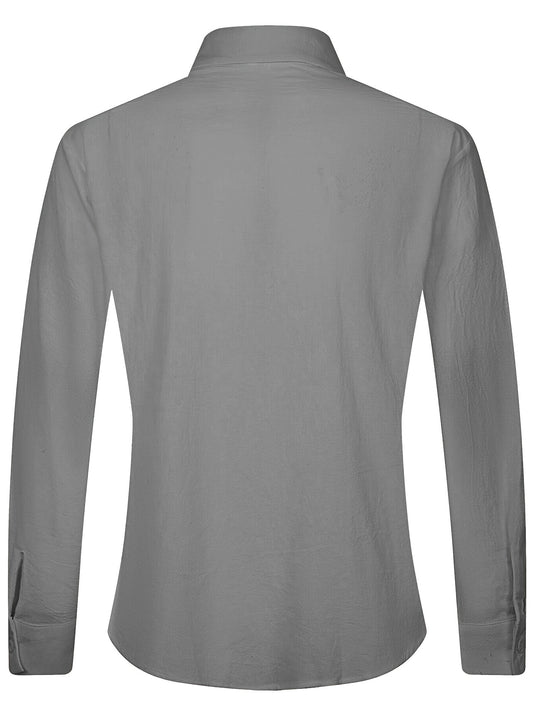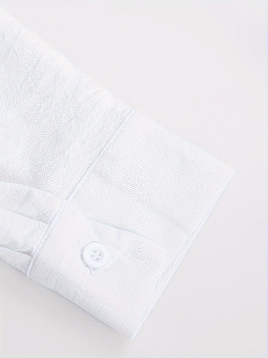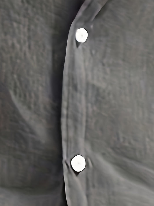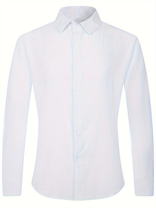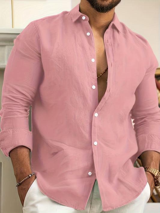Solid Color Men's Cotton Long Sleeve Button Up Shirt, Men's Spring Fall Lapel Top