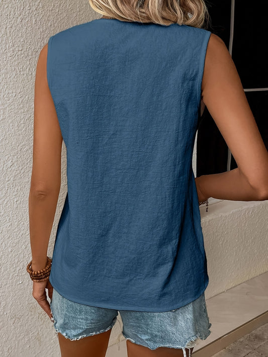 Solid Button Front Simple Blouse, Versatile Sleeveless Blouse For Spring & Summer, Women's Clothing