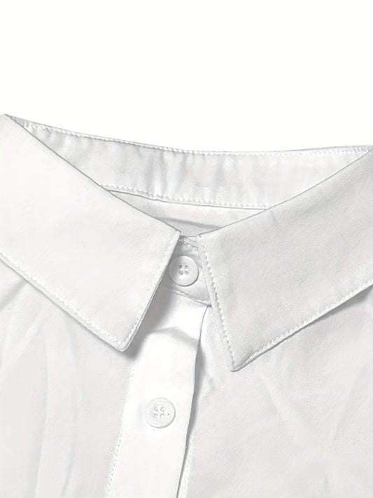 Solid Color Lapel Neck Blouse, Casual Button Front Short Sleeve Blouse For Spring & Summer, Women's Clothing