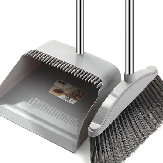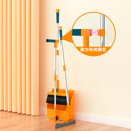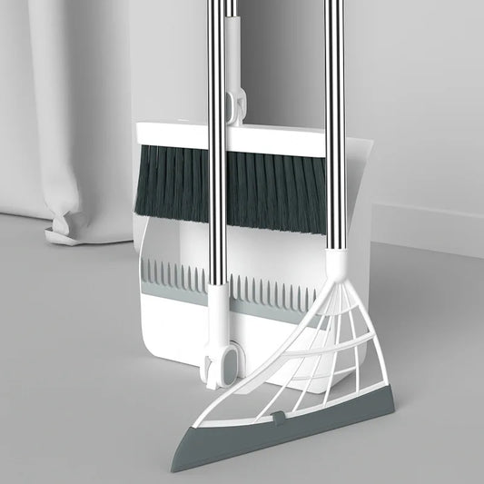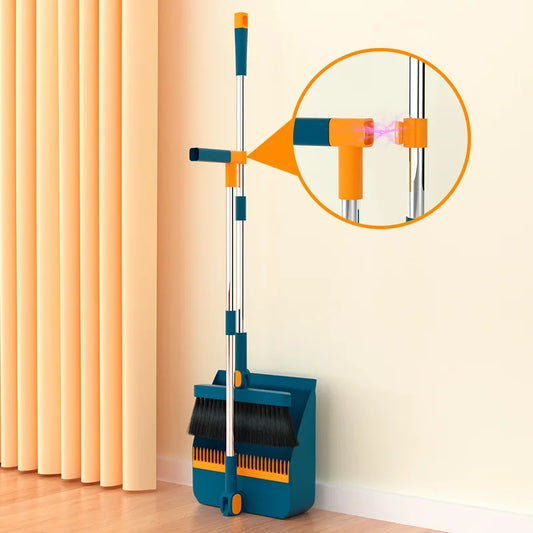 Stand up Broom and Dustpan for Home Use Foldable Long Handle 180 Degree Rotatable Broom Dustpan Combo Set
