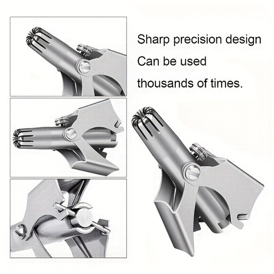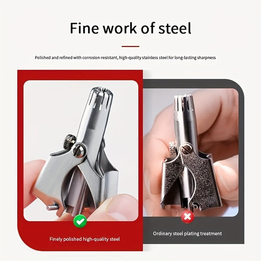 Stainless Steel Nose Hair Trimmer for Men & Women, Manual High-Quality Small Round Head,, Hypoallergenic Ear & Nose Hair Cutter, No Battery Needed, Washable