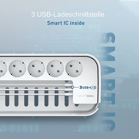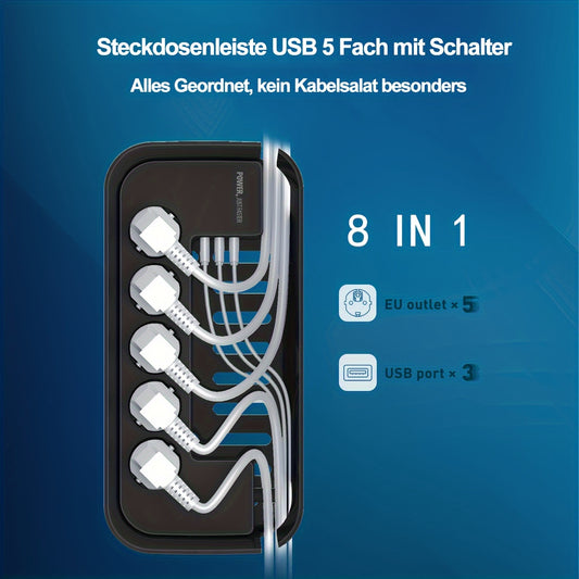 Surge Protector Power Strip with Cable Organizer, 5 Outlets & 3 USB Ports, 2500W Capacity, 2m Cord, Compact Design for Home Office & Dorm Room, Black, Power Strip Surge Protector