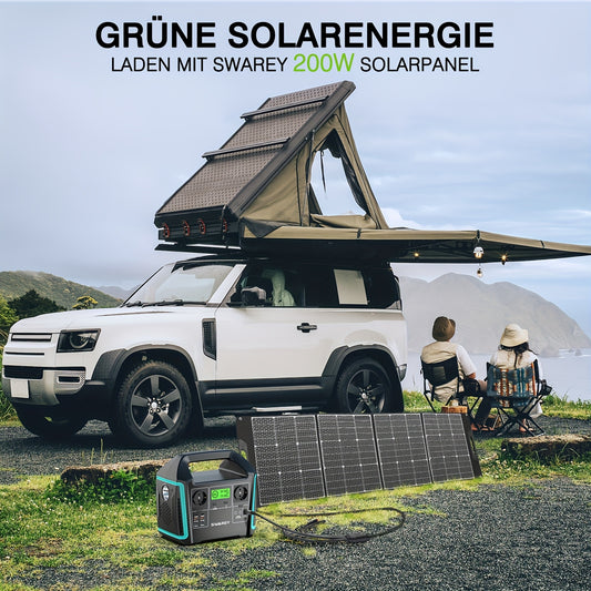 SWAREY Portable Power Bank with 200W Solar Panel, Power Station 518 Wh, Solar Generator 500W AC Output, 65 W USB-C Port, Power Generator Battery for Party, Travel, Camping, Motorhome, Emergency