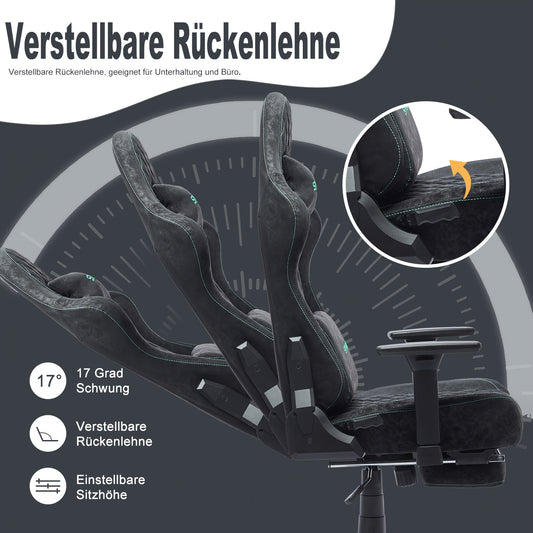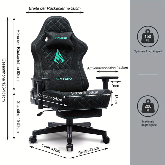 SYMINO Ergonomic Gaming Chair - Vintage Faux Leather, Adjustable Racing Chair Design with Headrest and Footrest, Rotating Task Chairs for PC & Office Use, Black with Teal Accents, Gaming Chair for Adults
