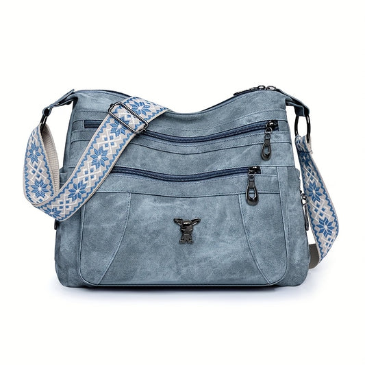 Taole Women's Vintage Bohemian PU Shoulder Bag - Adjustable Strap & Zipper Closure, Retro 1950s Handbag in Khaki/Ginger/Gray/Blue/Black, Casual & Dressy Outfits, Durable & Oil-Tanned Edges