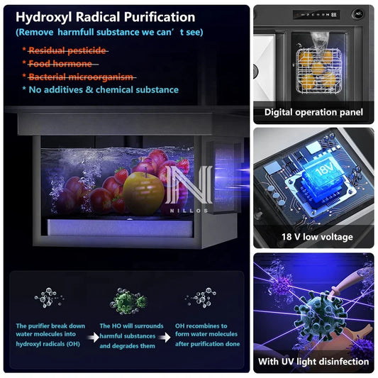 TD Digital Disinfection 3in1 Smart Kitchen Sink - Big Size Stepped Design for Fruit/Vegetable/Seafood, Black Nano,Luxury Kitchen