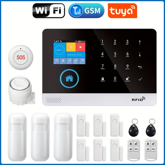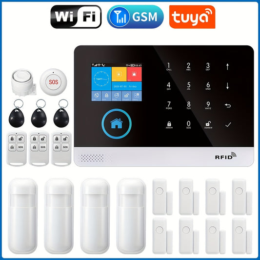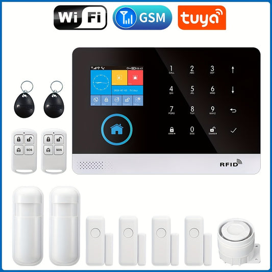 WiFi + GSM Auto-dial Smart Home Security Alarm System 433MHz LCD Display Alarm Panel Door Window Sensor PIR Motion Sensor Kit APP Remote Control Compatible With Alexa Google Home