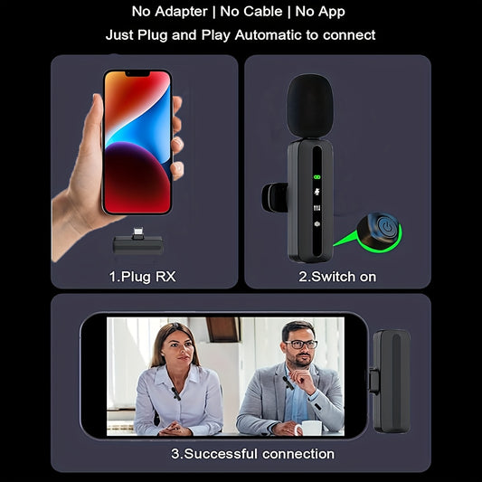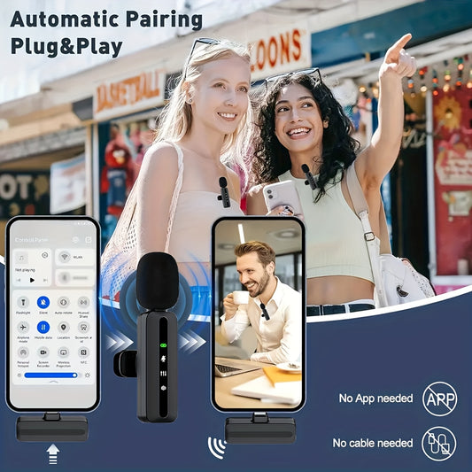 Wireless Lavalier Microphone For IPhone for ipad Android With Charging Case 80h Battery Life, Noise Cancellation, 49.99meter Range Plug-Play Clip On Lapel Mic For Video Recording, Vlog, Live Streaming