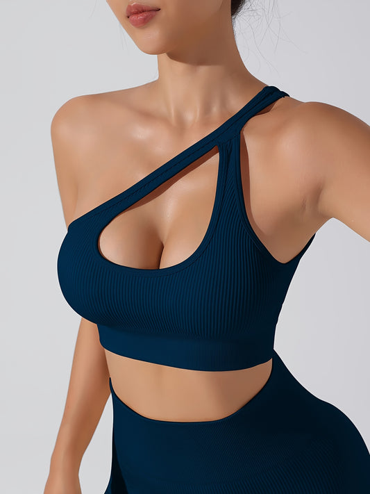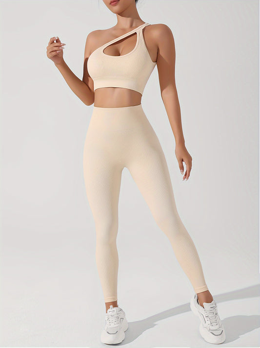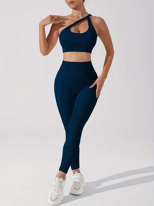 Women's 2pcs Yoga Set: Sexy One-Shoulder Sports Bra & High-Waist Butt Lifting Leggings - Stretchy, Non-See-Through Activewear