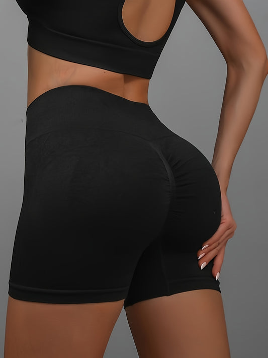 Women Fitness Yoga Seamless High Elastic Quick Dry Push Up Sports Leggings, Solid High Waist Running Workout Joggings Pants, Women's Activewear