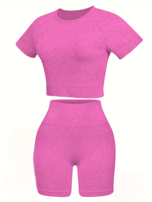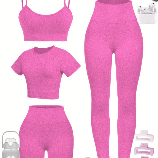 Women's 4-piece Yoga Sportswear Set, Soft Sports High Waist Leggings, Shorts, Sports Bra, Sports Short Sleeves, Gym And Outdoor Sports Fitness Equipment Excluding Accessories