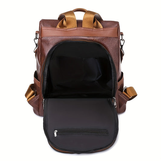 Women's Backpack - Large Capacity, & Travel Bag with Golden-Tone Hardware, Adjustable Shoulder Straps & Front Zipper Pocket - Coffee Brown/Beige/Red/Black Handbag for College, Business, Daily Use (Stylish Durable PU, Bags For