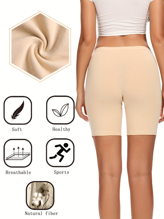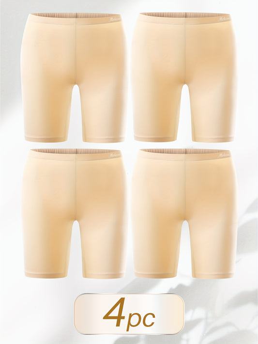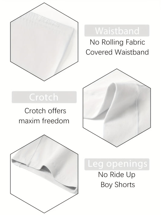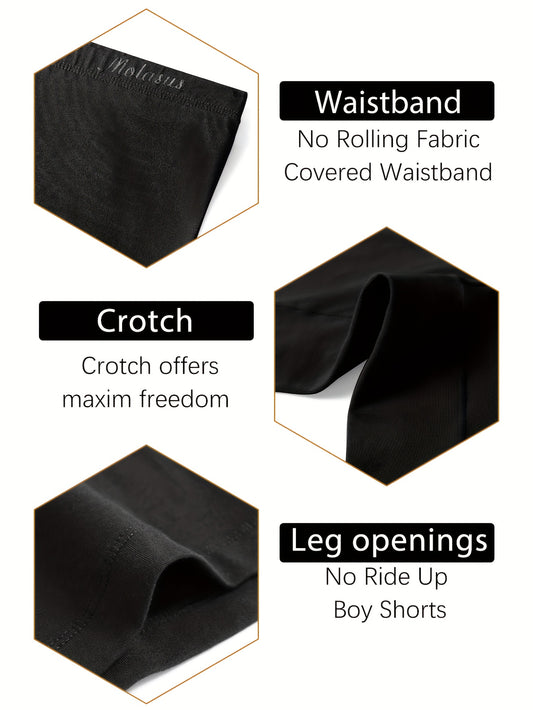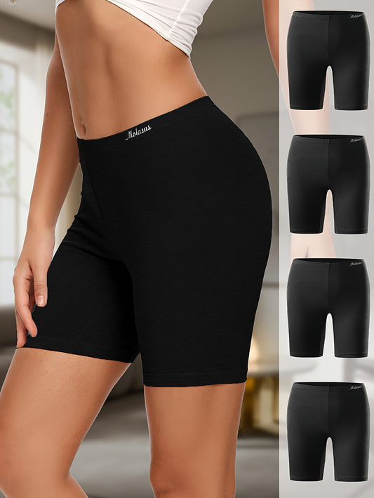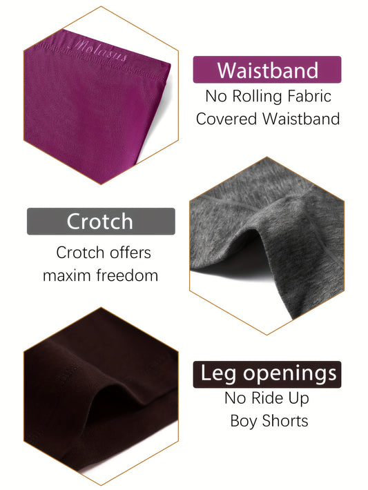 Women's Cotton Boyshorts Underwear 4-Pack - Comfortable Full Coverage Boxers, Knit Fabric, Solid Color, Simple Style, 95% Cotton 5% Spandex