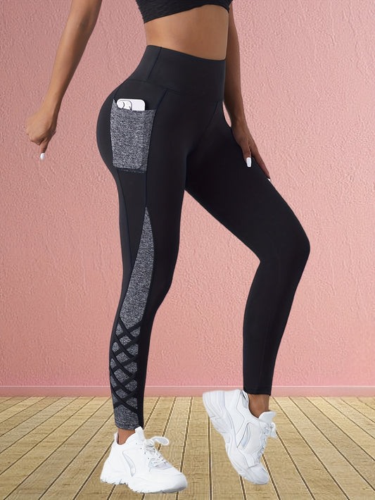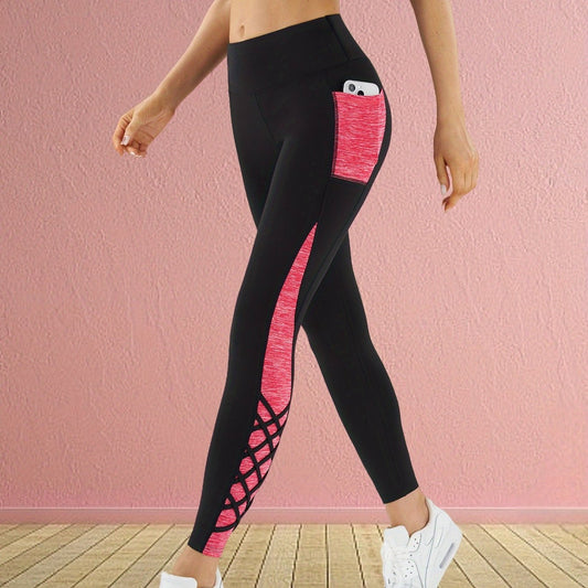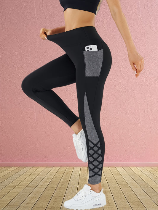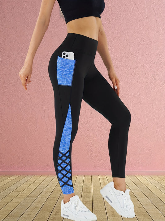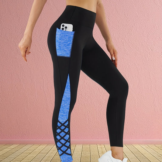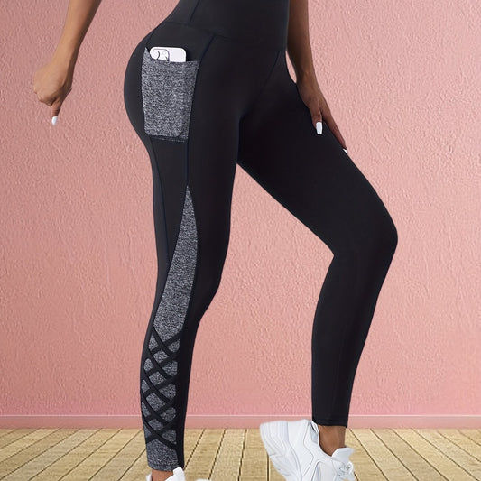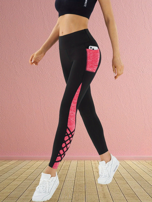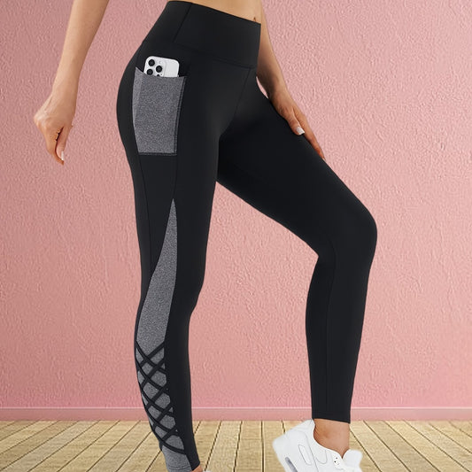Women's Activewear: Mesh Stitching Yoga Leggings With High Waist Side Pockets For Fitness & Gym Sports