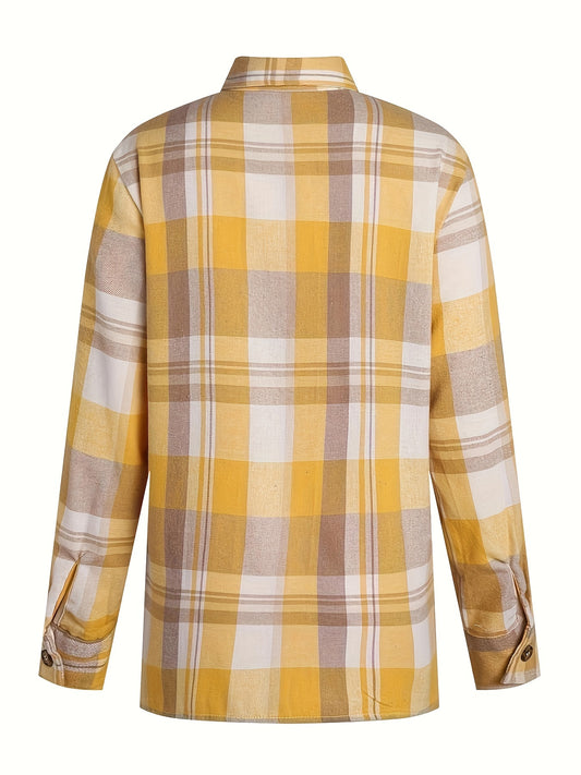 Women'S Casual Pink Plaid Button-Up Shirt - Short Sleeve Summer Top with Collar, Lightweight & Breathable Fabric for Casual Attire, Short Sleeve Blouse