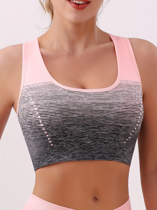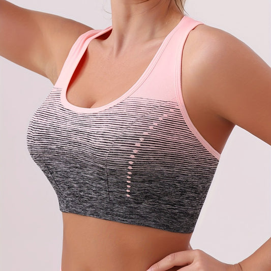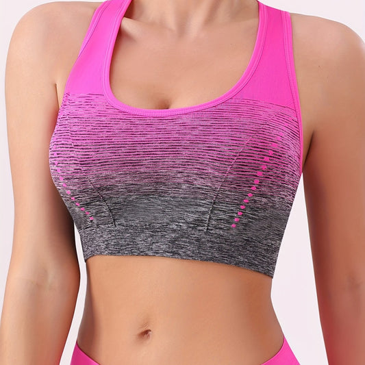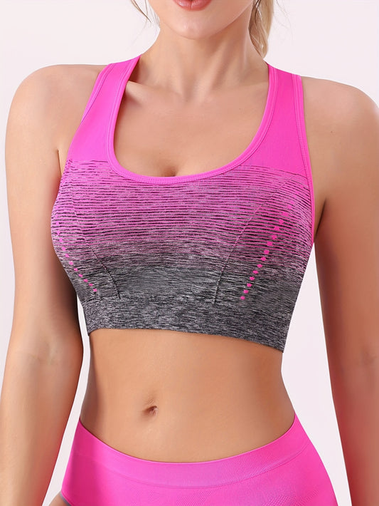 Women's Gradient Color Sports Bra, Beautiful Back Design, Comfortable And Breathable, Suitable For Sports And Daily Wear
