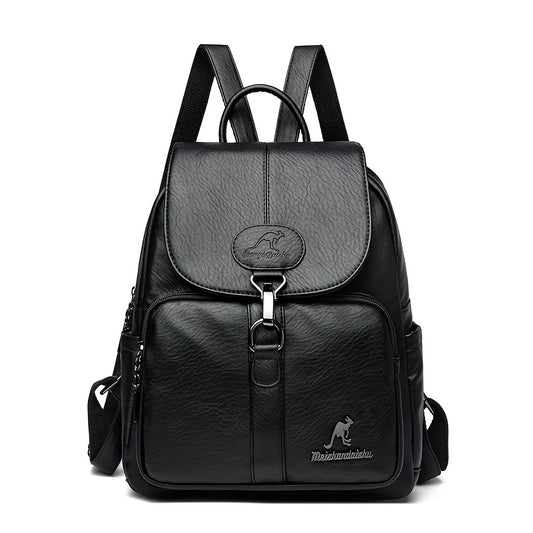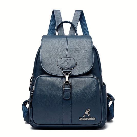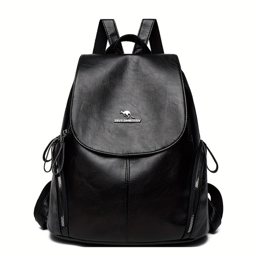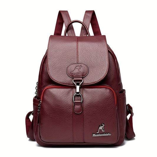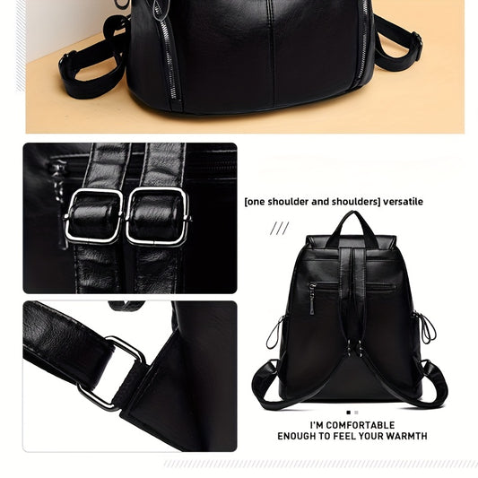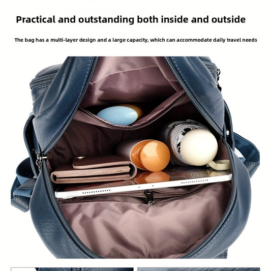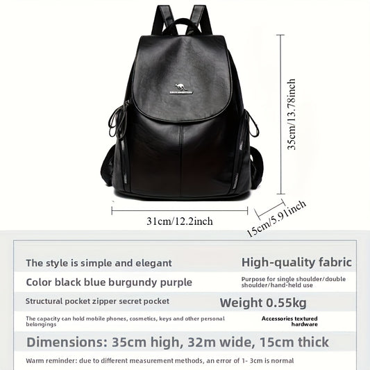 Women'S Genuine Leather Backpack - Elegant Minimalist Purse with Adjustable Shoulder Straps & Zipper Closure, Spacious Interior Compartment - for Work, Travel, School, Everyday Use - Available in Black, Red, Blue, Purple - Du