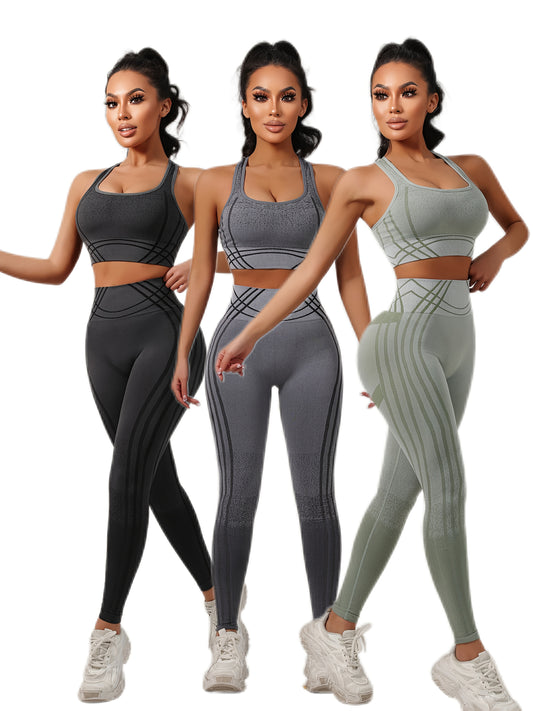 Women'S High Waist Yoga Pants And Sports Bra Set 3pcs Set
