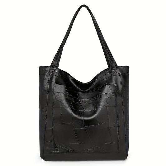 Women's Faux Leather Tote Bag with Magnetic Closure, Fixed Shoulder Straps, Solid Color, Polyester Lined, Edge Paint Detail, Suitable for Various Occasions