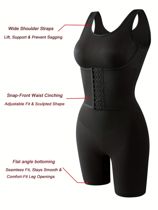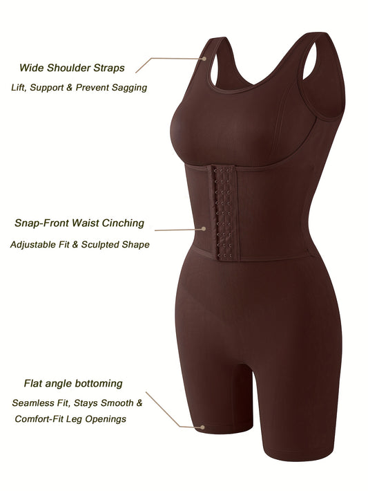 Women'S High Support Bodysuit - Seamless Double-Layer Pressed Lift & Tummy Control, Adjustable Waist with Front Closure, Non-Padded Design for Postpartum, Weight, Postpartum Shapewear, Postpartum Wear, Seamless Construction