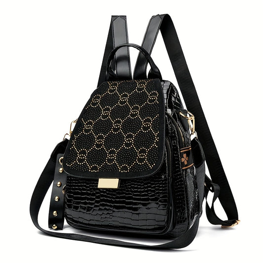 Women'S Fashionable Black Backpack with Diamond Pattern - Soft, Foldable, Zippered, Adjustable Shoulder Strap, Large Capacity, Versatile for Travel & Daily Commute, Casual Daypack|Stylish Backpack|Softshell Backpack
