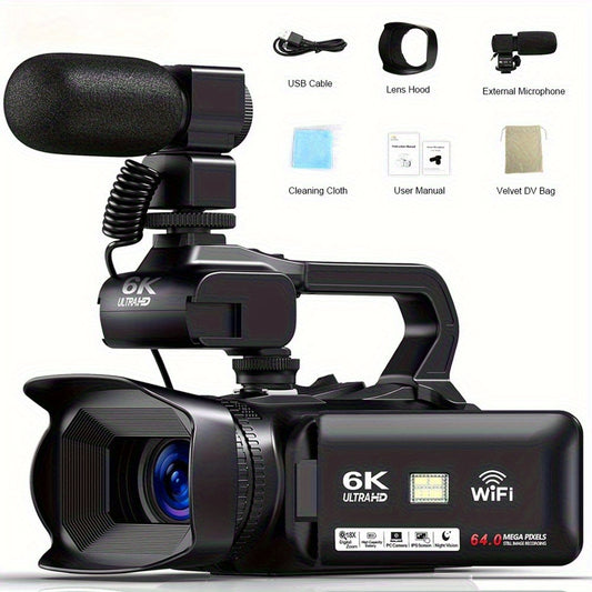 YISENCE 6K Camcorder Video Camera 64MP 18X Digital Zoom IR Night Vision Vlogging Camera for YouTube 10.16cm Touch Screen Digital Camera with WiFi, Microphone, Remote Control, Charger, Stabilizer and 64G SD Card