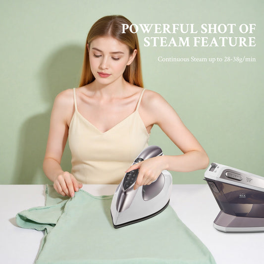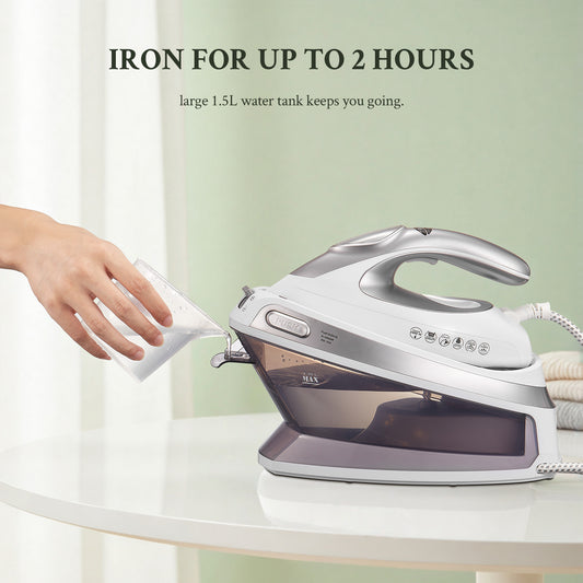 Yabano 2400W Steam Station Iron with 5.5 Bar Pressure, 1.5L Water Tank, Ceramic Soleplate, Anti-Limescale Function, Vertical Steaming, 3 Variable Temperatures, Cord Storage, Light Purple - 220-240V, European Plug, Steam Iron