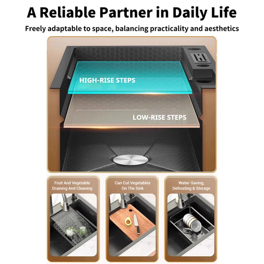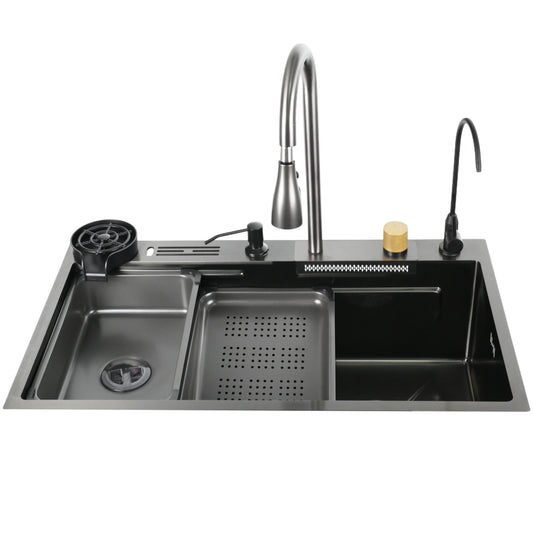 YITE Modern Square Single Bowl Flying Rain Waterfall High Pressure SPA Workstation Nano Surface Complete Kitchen Sink