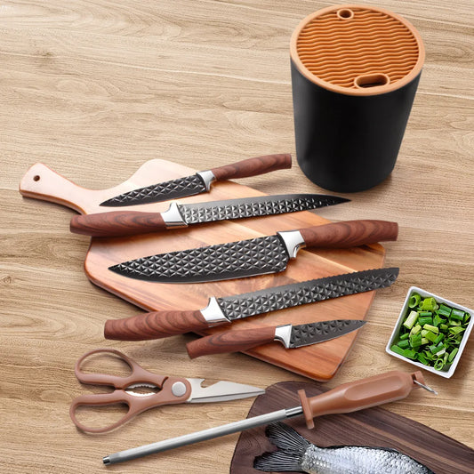 Yangjiang 7-Piece Kitchen Knife Set Including Chef Santoku Nakiri and Fruit Slicer Plastic Knife Holder Slicing Cleaver Knives
