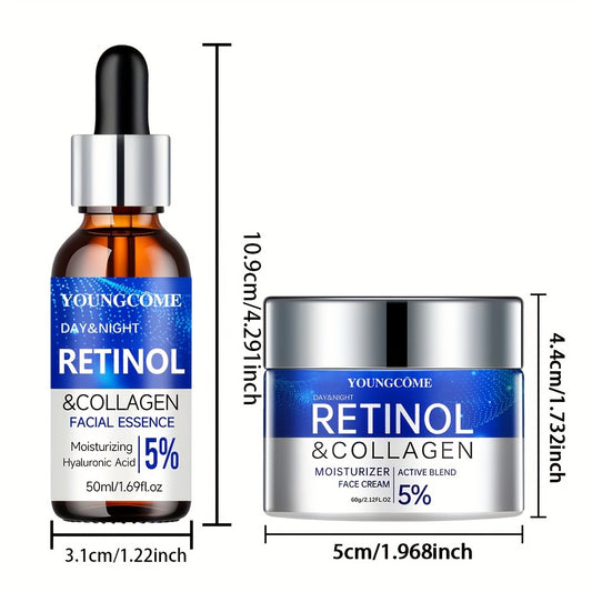 YOUNGCOME Retinol & Collagen Firming Cream and Hydrating Serum Set - 50ml Each, Alcohol-Free for All Skin Types, Smooths Wrinkles & Boosts Elasticity