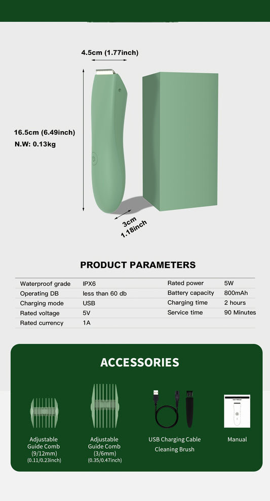 YAFULL Professional Body Groomer with IPX6 Replacement Blades - USB Rechargeable, 800mAh Lithium Battery, Ceramic Blade for Men'S Belly & Body Hair Trimming, Electric Shaver for Bikini & Men'S Grooming, Ideal Gift for Loved O