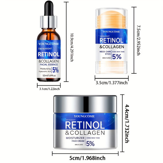 YOUNGCOME Retinol+collagen complex+hyaluronic acid Light Beige care set, powerful moisturizing face cream and firming essence, three piece neck care stick, alcohol free, suitable for all Light Beige types,make Light Beige you
