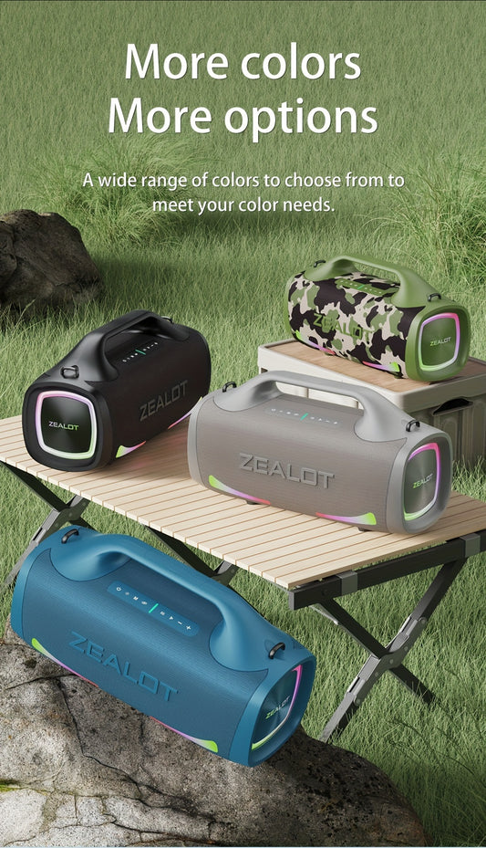 ZEALOT S76 50W Wireless Speaker, Outdoor Portable with RGB Lighting, 8-Hour Playtime, Supports Phone, Tablet, PC, TV. SD, USB, AUX, Dual Pairing Function, Suitable For Car, Camping, Beach, Party