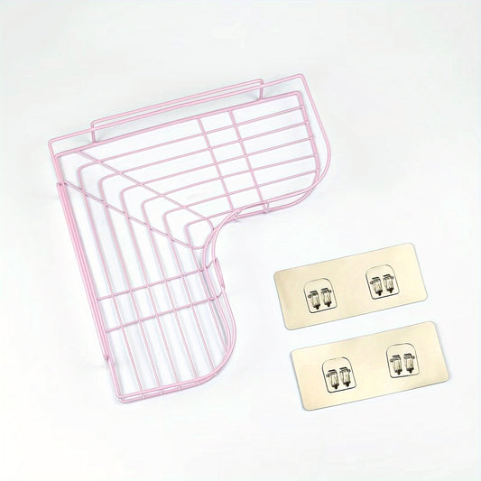 [Cast Iron Shower Shelf] 1pc Cast Iron Corner Shower Shelf - No-Drill Wall Mounted Black Wire Mesh Bathroom Storage Rack for Easy Access & Organization, Perfect for Shampoo, Conditioner, and Soap, Bathroom Storage Solution |