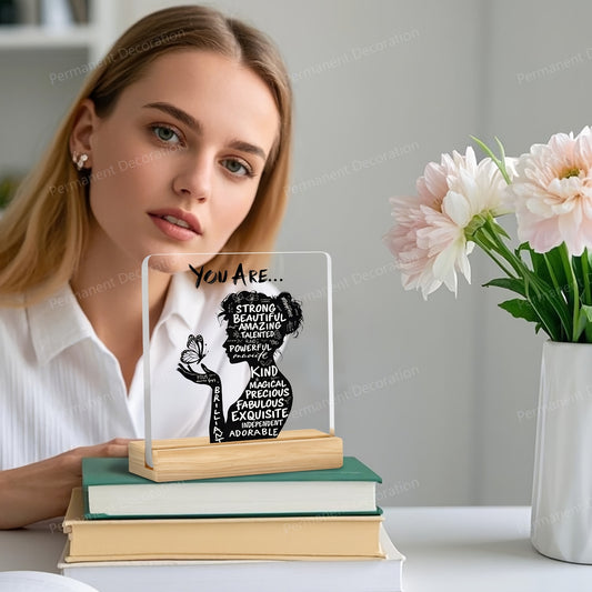 [2D Flat] 1pc Inspirational Acrylic Desktop Decoration with Positive Affirmations - "You Are Powerful, Beautiful, Amazing" - Elegant 2D Design for Home, Office, or Cafe Decor - Perfect Gift for Birthdays, Housewarming, Holida