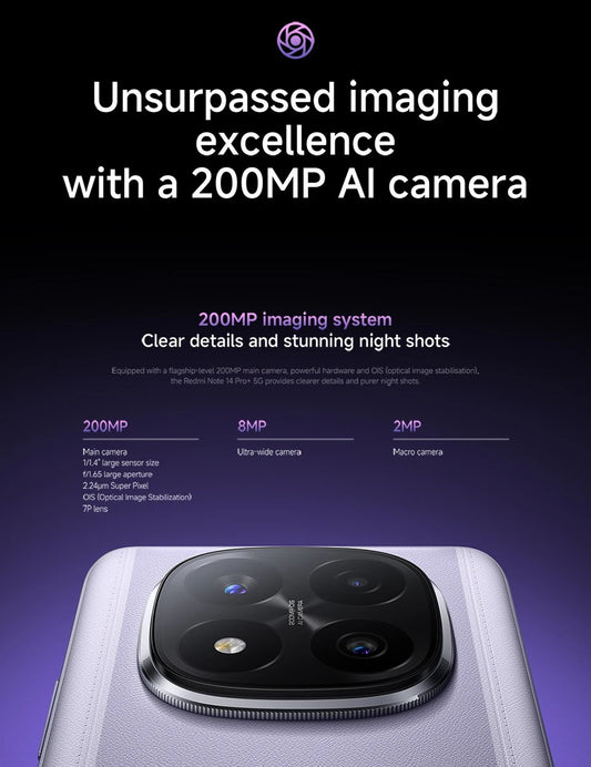 Xiaomi Redmi Note 14 Pro Plus 12GB+512GB 5G Smartphone Snapdragon 7s Gen 3 6.67" AMOLED Display 200MP Triple Camera 120W HyperCharge