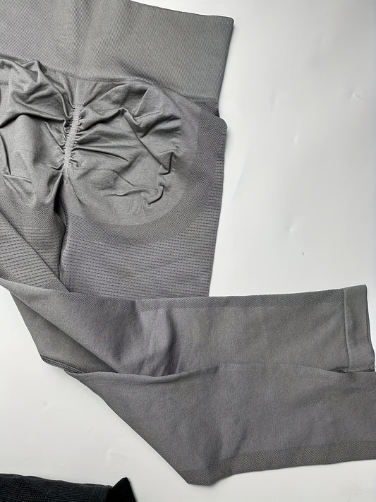 Women'S High-Elasticity Quick-Dry Yoga Leggings - Seamless Tummy Control Training Running Pants with Wide Waistband, Gray & White Striped Design, All-Season Workout Leggings for Gym, Yoga, Jogging, Gym Apparel, Sleek Sportswe