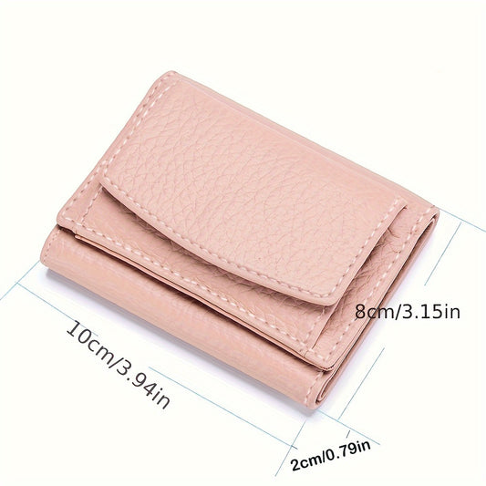 Women's Mini Wallet, Faux Leather Snap Button Coin Purse, Solid Coin Pockets, For Everyday