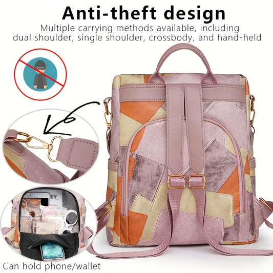 Women's Large Capacity Travel Backpack with Anti-Theft Technology, Heavy-Duty Nylon & PU Shell, Adjustable Padded Straps, Golden-Tone Hardware & Secure Zipper Closure - Stylish School Backpack for Commuting, Hiking, Work, Col