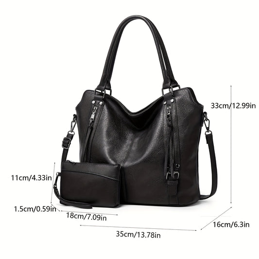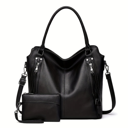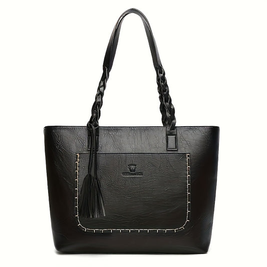 Women's Large Capacity Tote Bag - Elegant -like Handbag with Zipper Closure, Spacious Work Bag for Women, Available in Black/Brown/Red/ - Perfect for Office, Travel, Everyday Use, Sophisticated Design, Sturdy Handle Construct