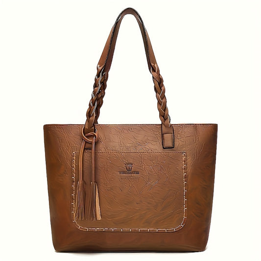 Women'S Large Capacity Tote Bag - Stylish Brown with Golden-Tone Hardware, Zipper Closure & Detachable Strap, Perfect for Work Or Everyday Use, Versatile Carryall | Elegant | Durable, Large Tote Bag