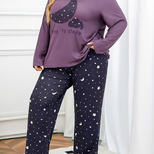 Women's Moon Letter Pajama Set, Long Sleeve